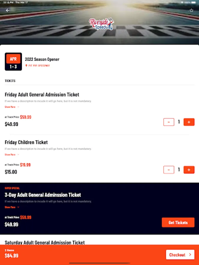 Manage your tickets with zero hassle right at your fingertips. You’re always just a few taps away from securing seats to your favorite motorsports events.