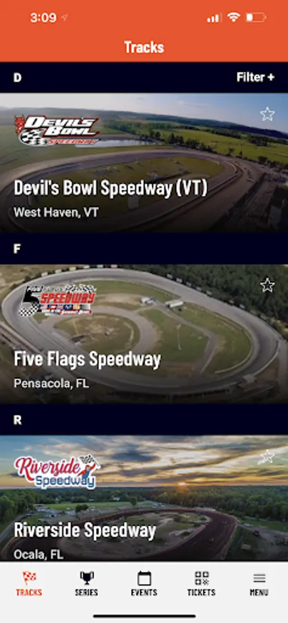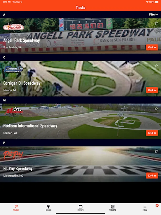 Search by event, track or series to find the perfect motorsports event for you, and favorite the places you care about most
