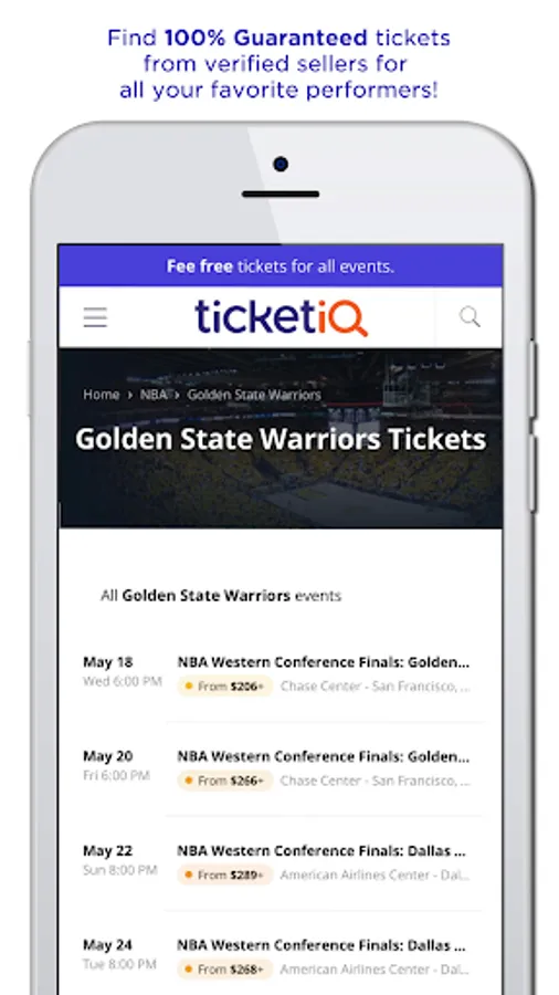 Download the TicketIQ App for best prices for Fee-Free Sports Tickets, Concert Tickets, Theater Tickets +more.