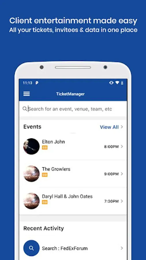 Enter TicketManager. TicketManager is the best way to manage all of your client entertainment. Our web and mobile products help companies manage their sports and concerts tickets, organize company events, and stay compliant with all legal & tax regulations around client entertainment.