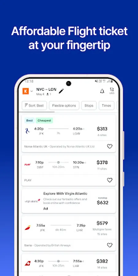 Search flights & compare airline tickets from top providers like Momondo, Edreams, Cheapoair, Aviasales, Skiplagged, Scotts cheap flights, Skyscanner, Wayaway, One Travel, and many more. We always focus on delivering cheap tickets to our users for budget-friendly travel. We design a simple user interface to make your cheap flights booking more easier than ever. The advanced filter option in the Flight Ticket Booking app allows users to select flights according to their criterias like date of airways booking, arrival & departure time, number of stops, price of flight tickets, etc. So always have a great cheapflights booking experience with us.