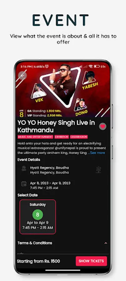 For users interested in buying event tickets, Ticket Sanjal ensures a smooth and stress-free process. Once users find an event they wish to attend, they can access comprehensive event details, including descriptions, locations, timings, and ticket prices.