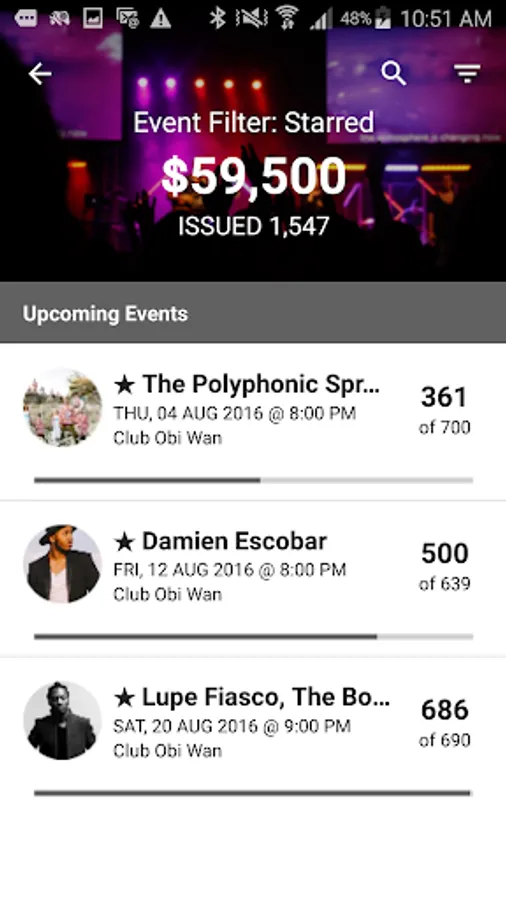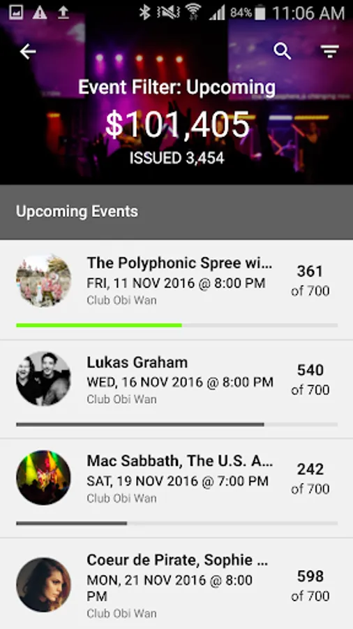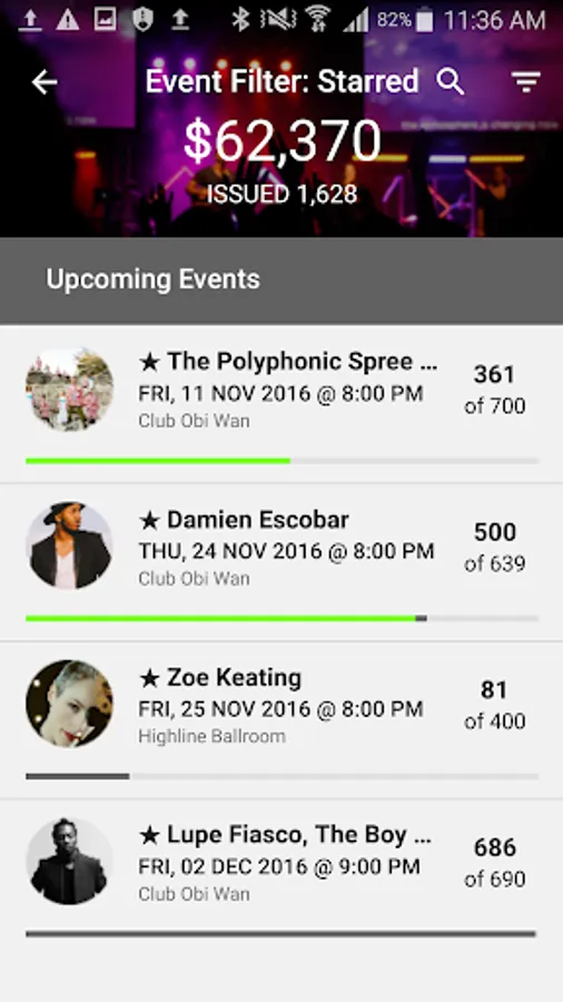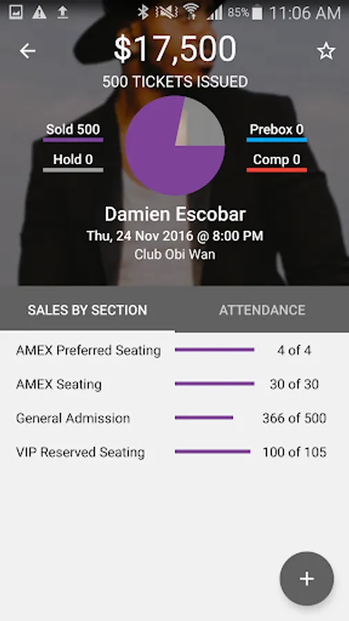 • Access event ticket counts, gross sales, attendance and more!