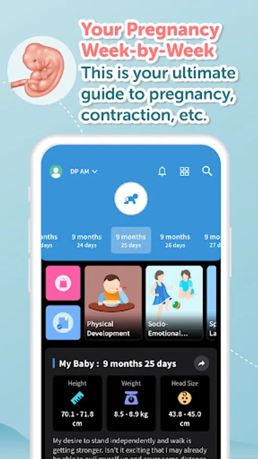Once your little one arrives, our track my baby feature allows you to monitor his/her growth and development.