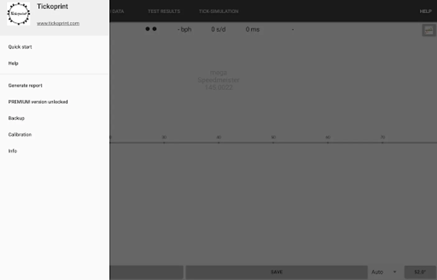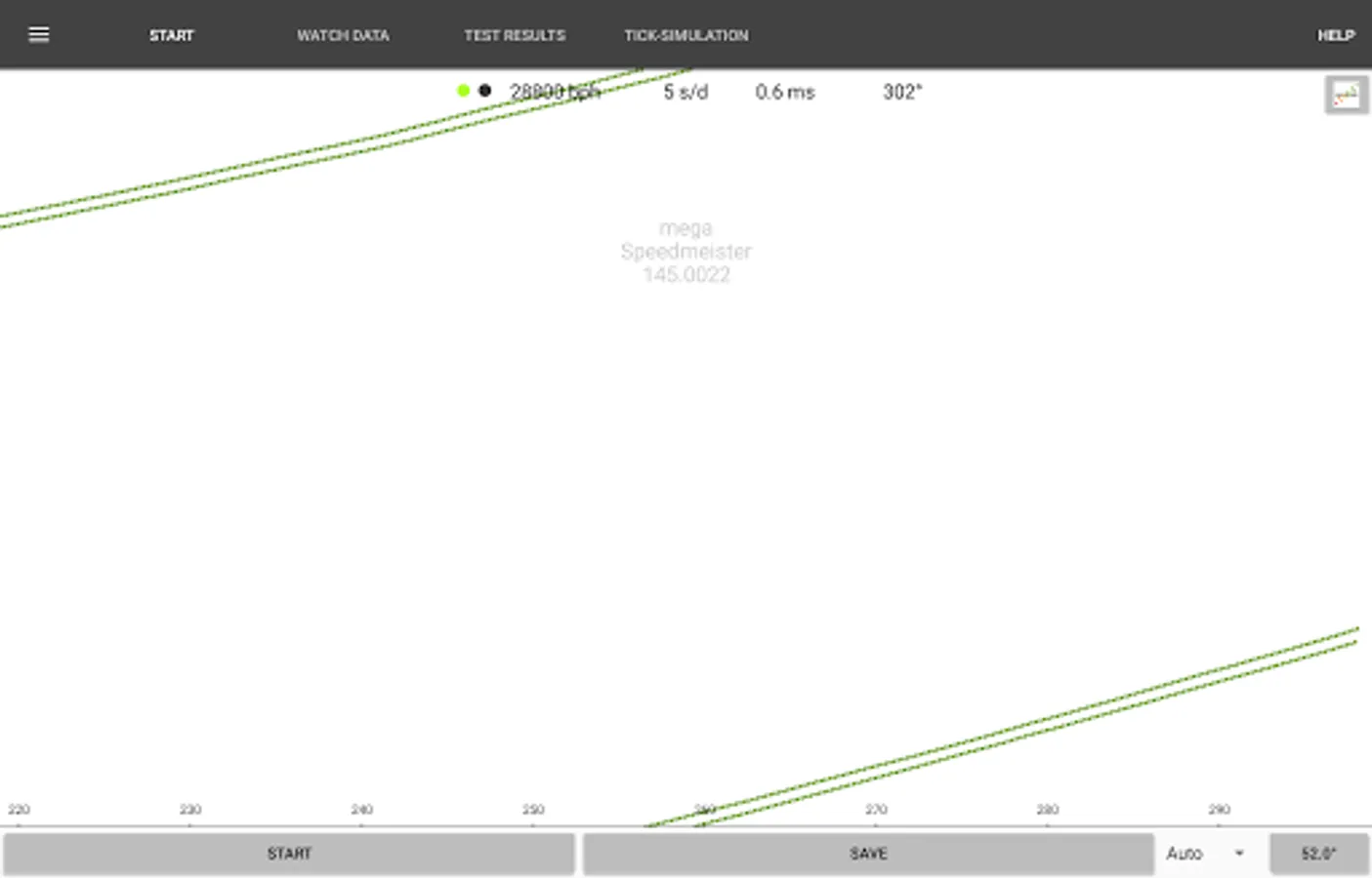 TICKOPRINT® FREE displays the accuracy deviation in seconds/24h and shows the beat error by the gap in the diagram line. A “Tick” simulation with user-selectable values shows the working model of TICKOPRINT. All tests can be stored on the mobile device and can be replayed for checking the test results. The "running paper strip" direction is selectable (horizontally or vertically).