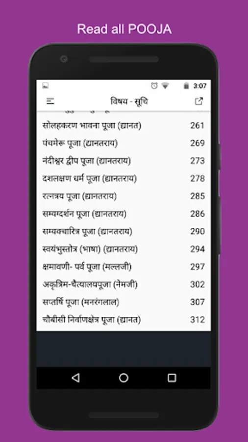 In our fast paced life, we carry our phones and tablets every where. Poojan Path Pradeep (Jinvani) is an app to help you find the important daily rhymns, practiced in Jainism, in your hand.
