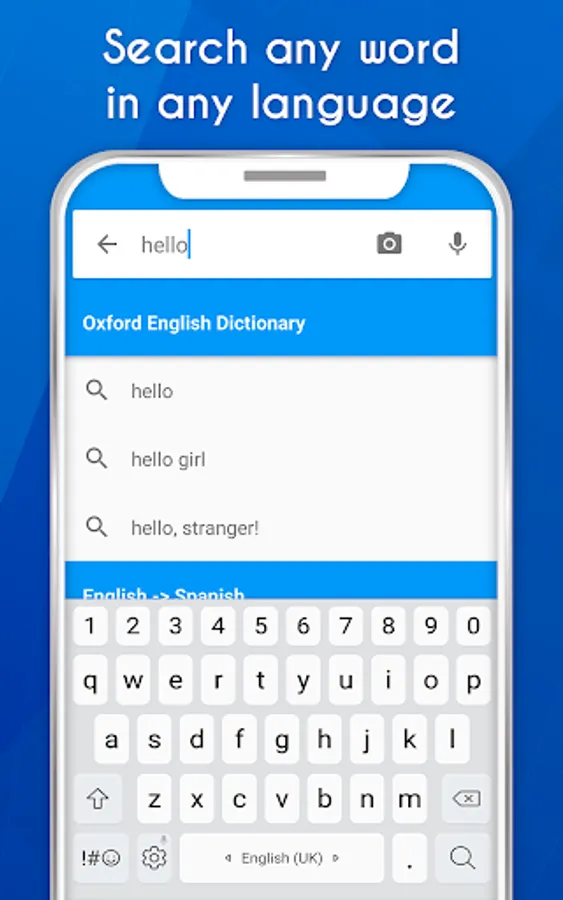 This app includes English dictionary, Spanish dictionary, Arabic dictionary, French dictionary, German dictionary, Hindi dictionary, Italian dictionary ...