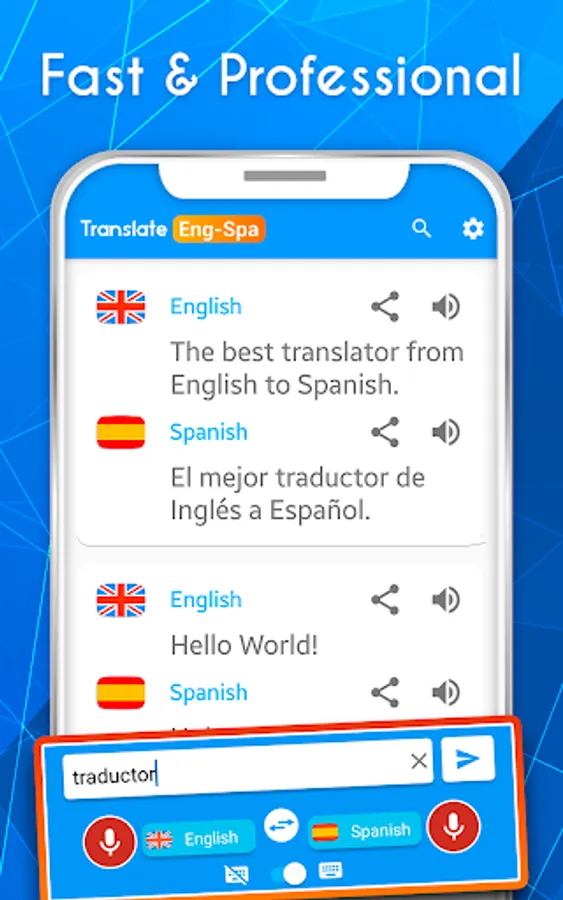 🔊 Fast and direct, speak or write in your language, english or spanish, and get a translation in text or voice with good pronunciation.