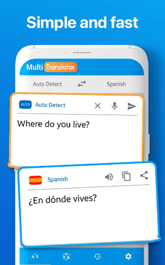 Listen to the pronunciation of your translations offline, and clean the cache of sounds when needed. Conversations in any language is easy. Translate different texts and voice translator function. Talk and translate.