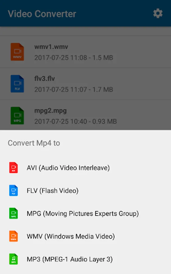 - Video Converter is able to work with the following formats: MP3, AVI, MPG, GIF, FLV, WMV, MP4.
