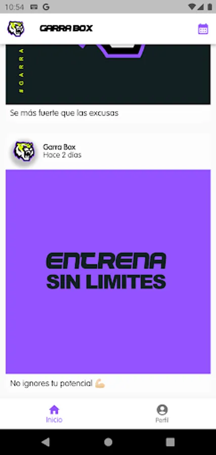 The official app of Garra Box. From the app you can see the schedules of all classes, book and see your daily routines.