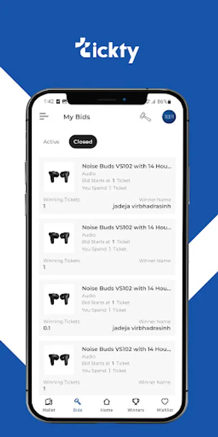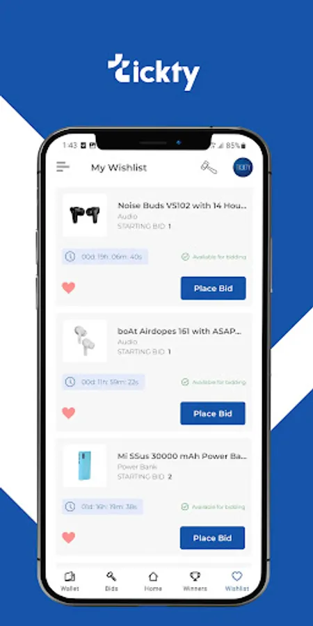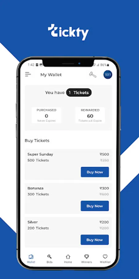 Tickty is an online marketplace that allows you to purchase your favorite items at lower prices. You just need to use your available tickets to bid on your favorite products and increase your chance of winning the auction by placing multiple bids.