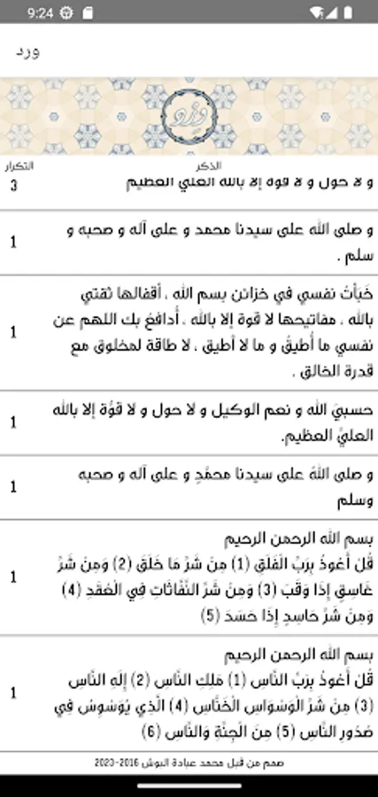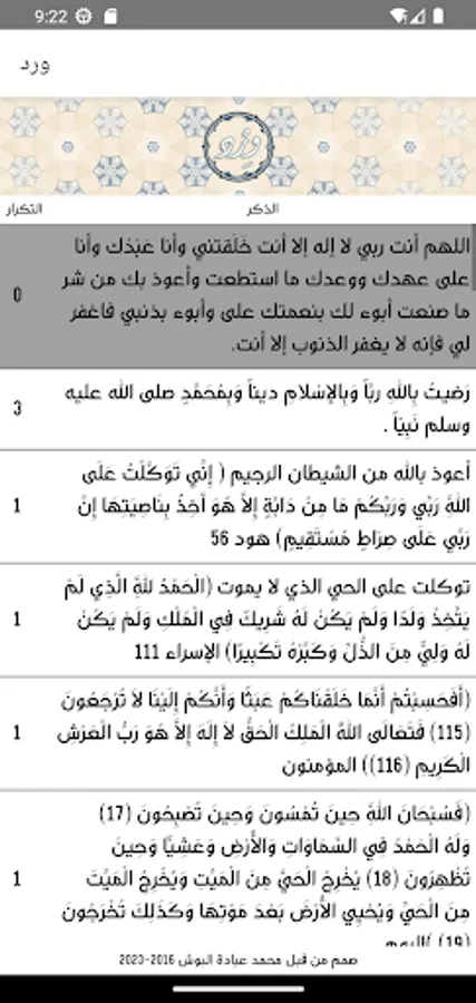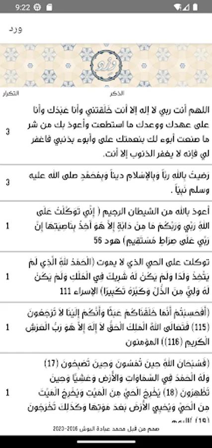 Ward application contains the morning and evening remembrances of Imam Nawawi's book Ward
