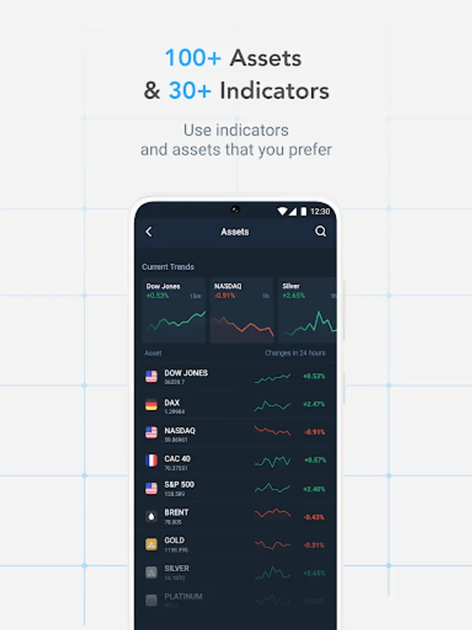 A wide array of available financial instruments and tools to use, coupled with easy-to-use indicators and analytical tools to make winning trades. Everyone will be able to find an asset they like best including stocks, indices, metals and commodities, ETFs, and currencies.