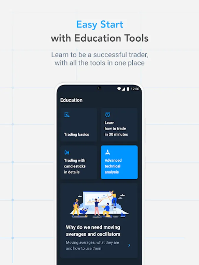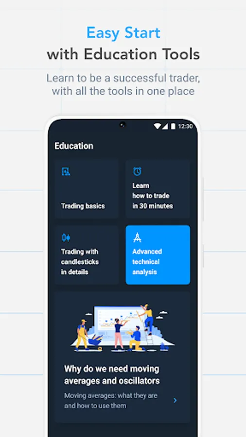 With this app, even old smartphones will be able to access our platform. You will get all the same tools, instruments and assets available to other OT users, while spending less of your phone's resources. Even better, it takes up less space as well, broadening the list of suitable smartphones.