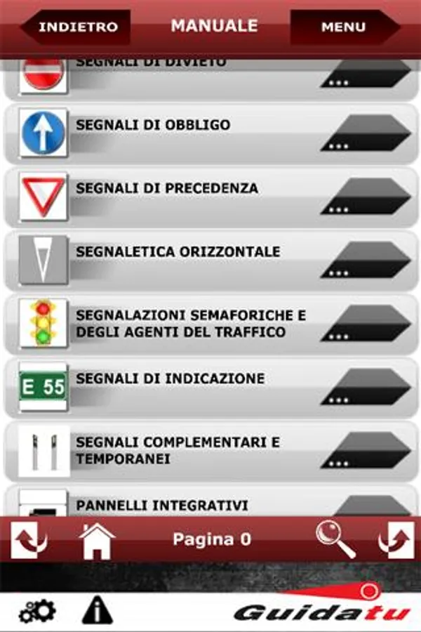 Exam simulation with over 7000 ministerial questions and the theory manual: the only app that allows you to study the traffic rules thanks to a real integrated eBook.