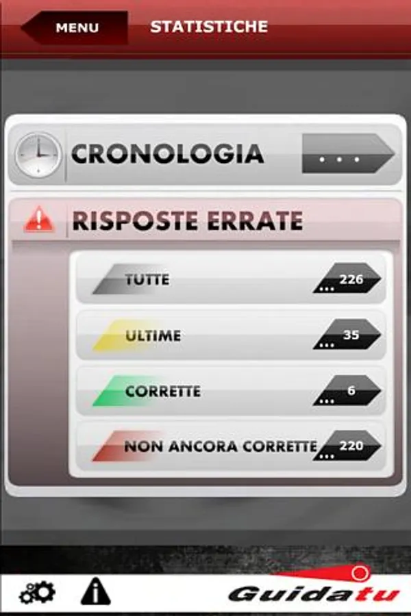 - CHRONOLOGY of the various exam sessions, with the possibility of repeating the exam by drawing on all the wrong quizzes previously;