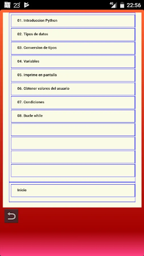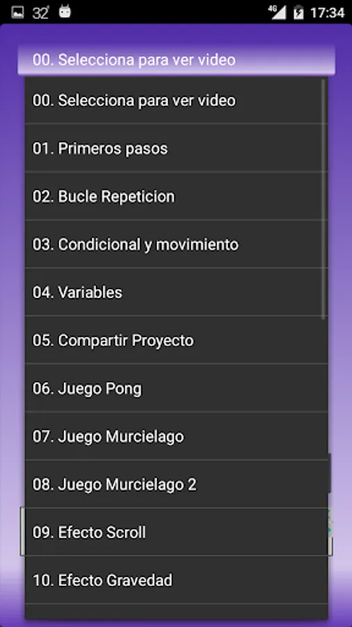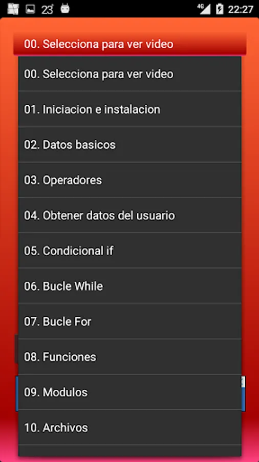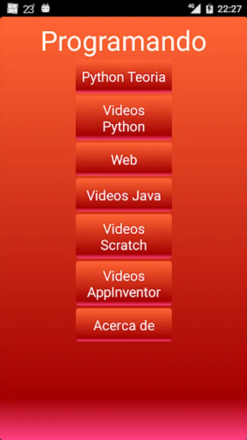 Application with simple examples to start programming with content on Android, Php, Java, Html, Scratch, Python, along with video tutorials on YouTube.
