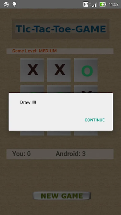 Enjoy playing the classic game of Tic Tac Toe on your Android device. Super Tic Tac Toe game support one player so you can against android device. The game includes three difficulty levels easy, medium, hard. You can select level that match your skill. There is no banner adevertising. Get app now and let the fun begin.