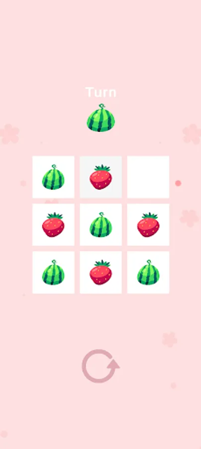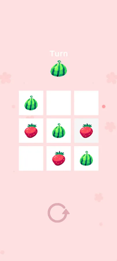 K8 Fruit tictactoe, play tic tac toe with fruits. This is a tictactoe for 2 players to play together. The game uses 2 types of fruit, strawberry and watermelon, representing X and O.