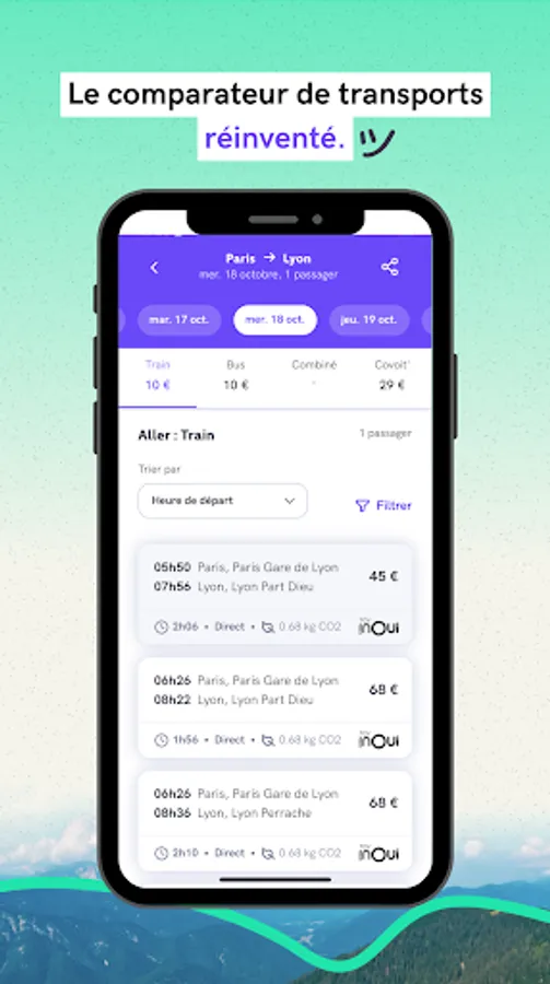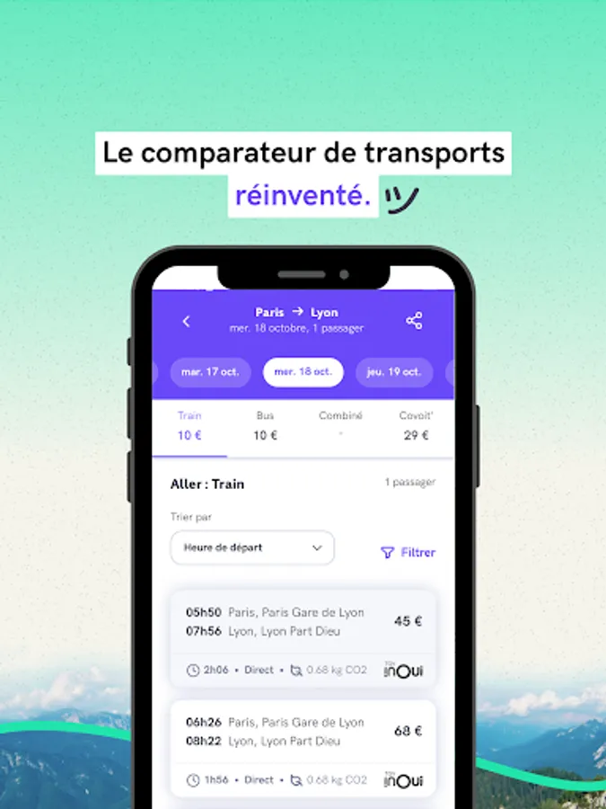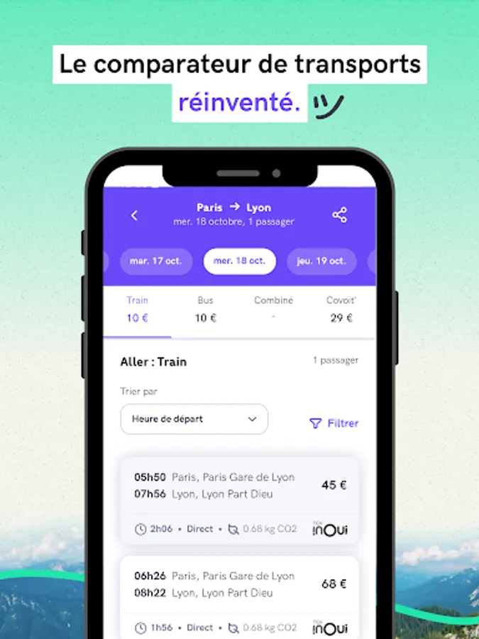 The comparison and booking of train, bus and carpooling tickets at the best price. All SNCF, Flixbus, Blablabus, Blablacar offers available in a few clicks with our top travel app!