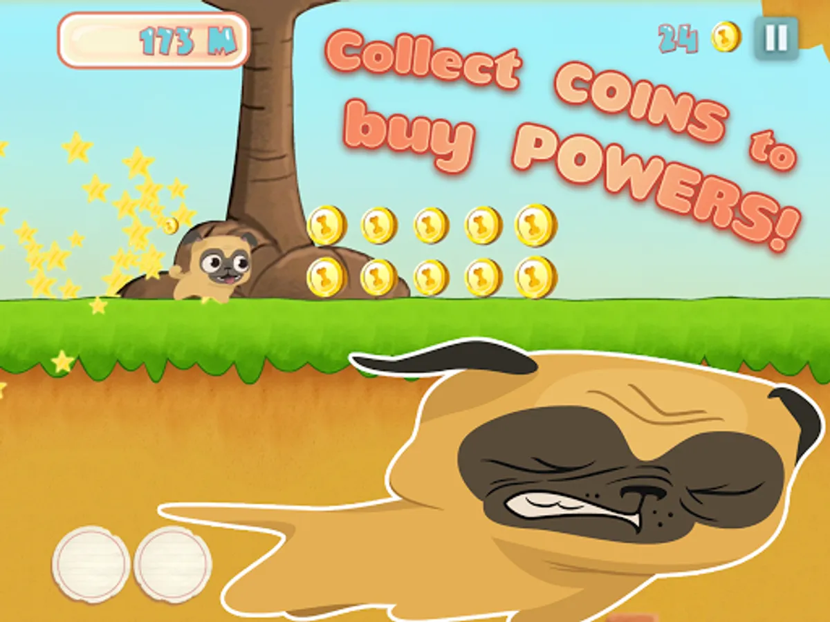 Pencils and coins are scattered throughout the world to help you along in your journey! Collect coins to buy Pug Treats or Pug Bites to further help Bogart on his quest to reach the boy. Pick up pencils to draw in special powers!