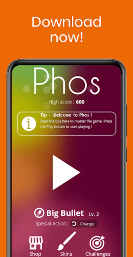 Introducting Phos: a simple, fun and easy to handle mobile game. Advance along the way, while illuminating it with the light bonus. Beware of enemies, which throw you dangerous projectiles!