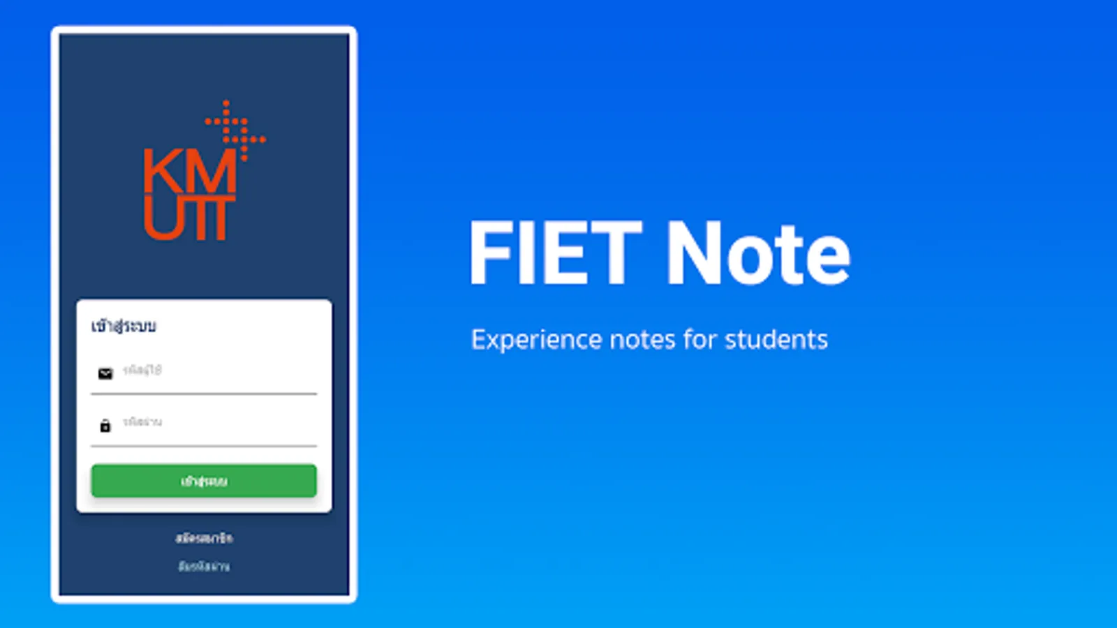 FIET Note is an application for taking notes of students' learning and events each week. Which is under the supervision of the Faculty of Industrial Education and Technology King Mongkut's University of Technology Thonburi