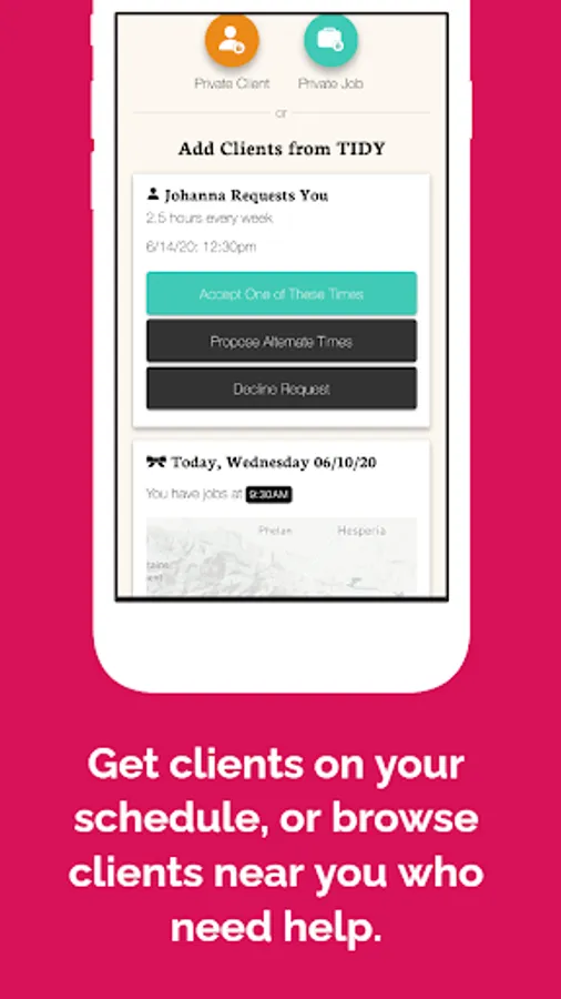 - Get Clients directly on your schedule, or browse clients looking for a pro.