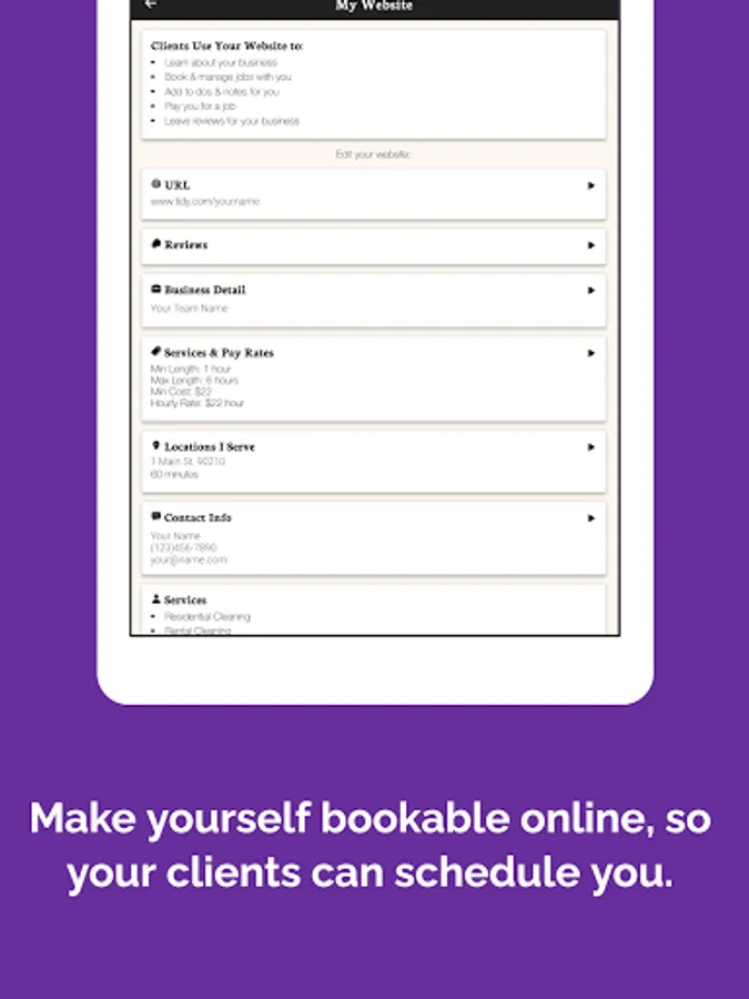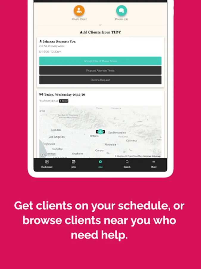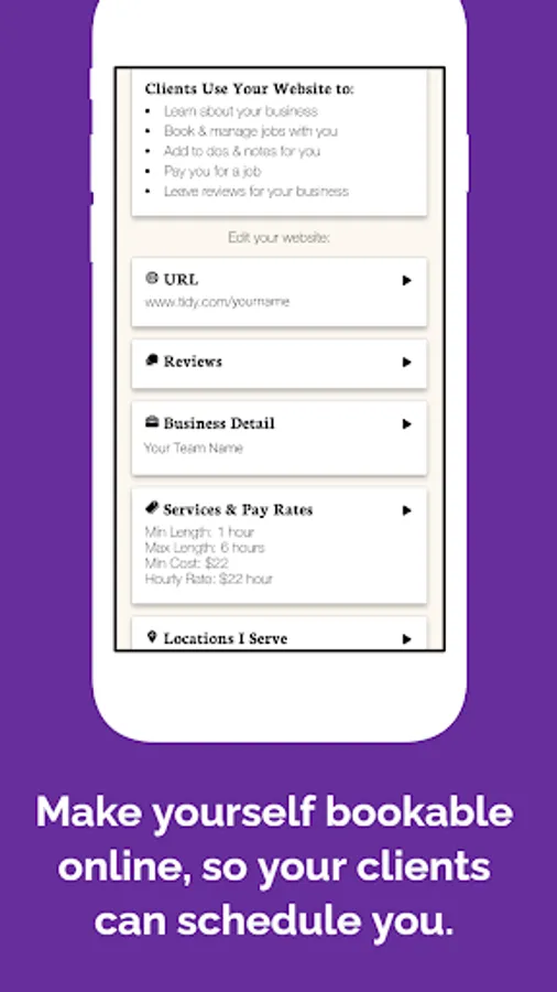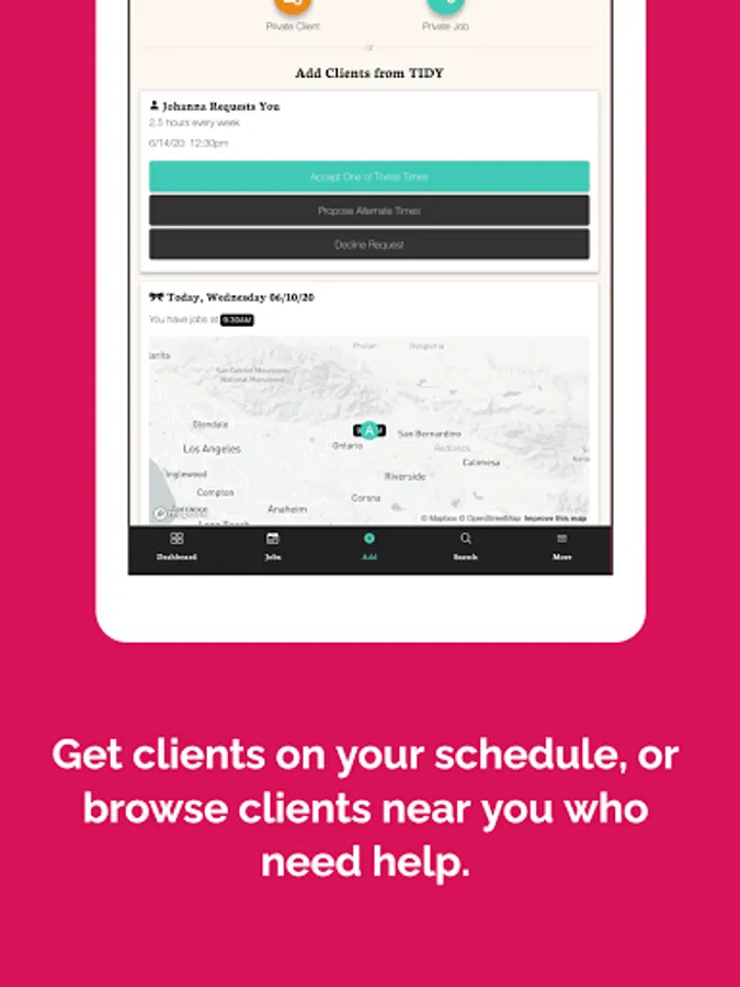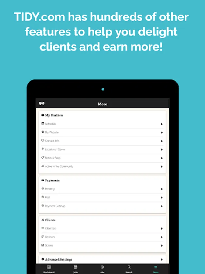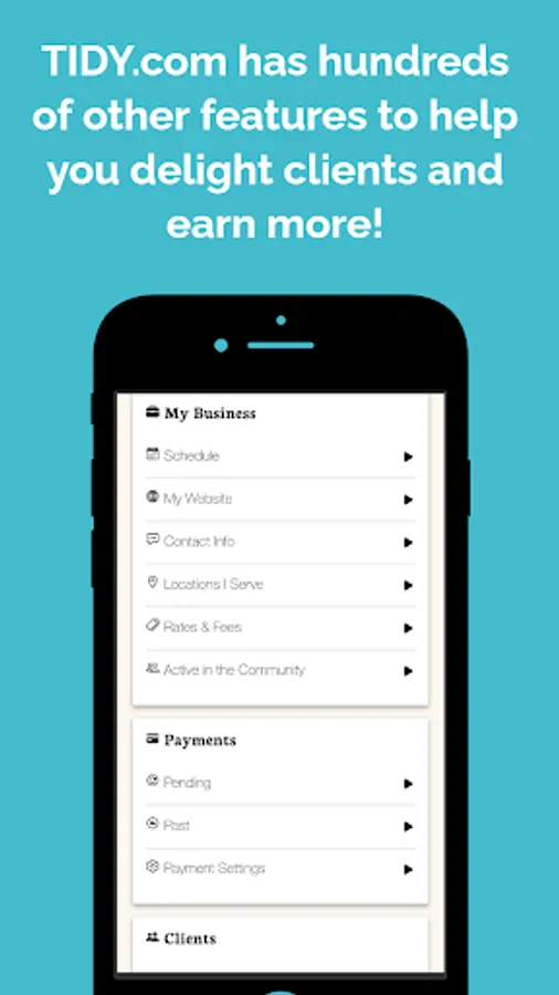 You pick the rates you are willing to pay (typically up to $38/hr), the locations you would serve, the schedule you want, and let us help with the rest. We work for you with our TIDY Concierge available 24/7 to help with issues.