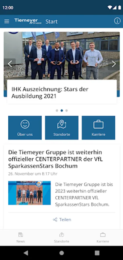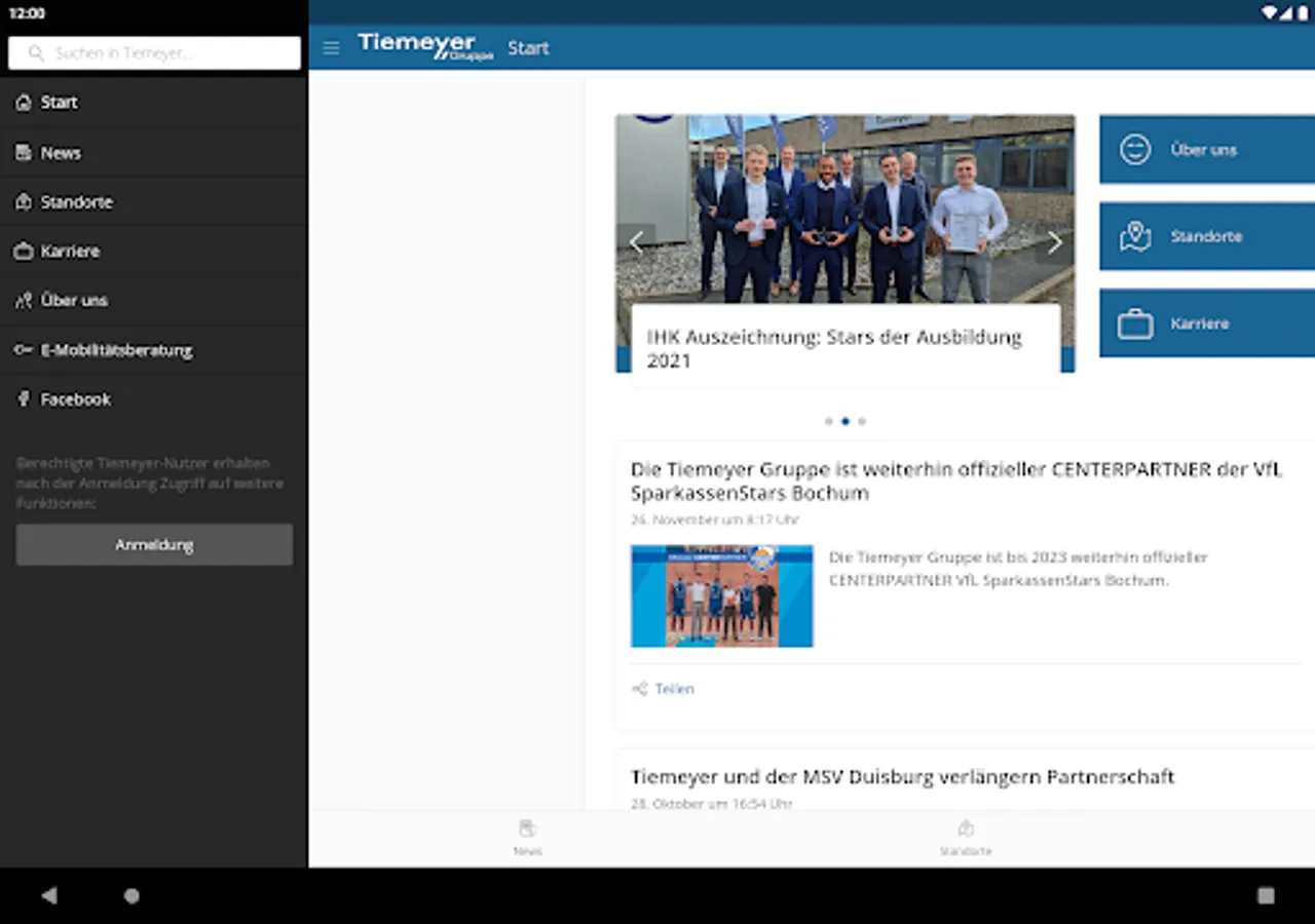 The Tiemeyer App provides up-to-date information about the Tiemeyer Group, one of the largest automotive trading groups in North Rhine-Westphalia. For more than 68 years, the name Tiemeyer has stood for tradition, experience and progress in the field of vehicles and vehicle technology in the Ruhr area and now throughout North Rhine-Westphalia. At 27 locations in twelve cities, we are the competent contact for everything to do with the brands Audi, Volkswagen, Volkswagen Commercial Vehicles, SEAT, CUPRA and ŠKODA and offer you brand quality in all service areas in modern architecture and a personal ambience - from the presentation of the vehicles to comprehensive services. In our app, customers, suppliers, partners and employees will find a comprehensive location map with all car dealerships in our regions. They also receive relevant information and news about the company and career opportunities. Other functions such as an events calendar and a social media wall allow further insights into the company.