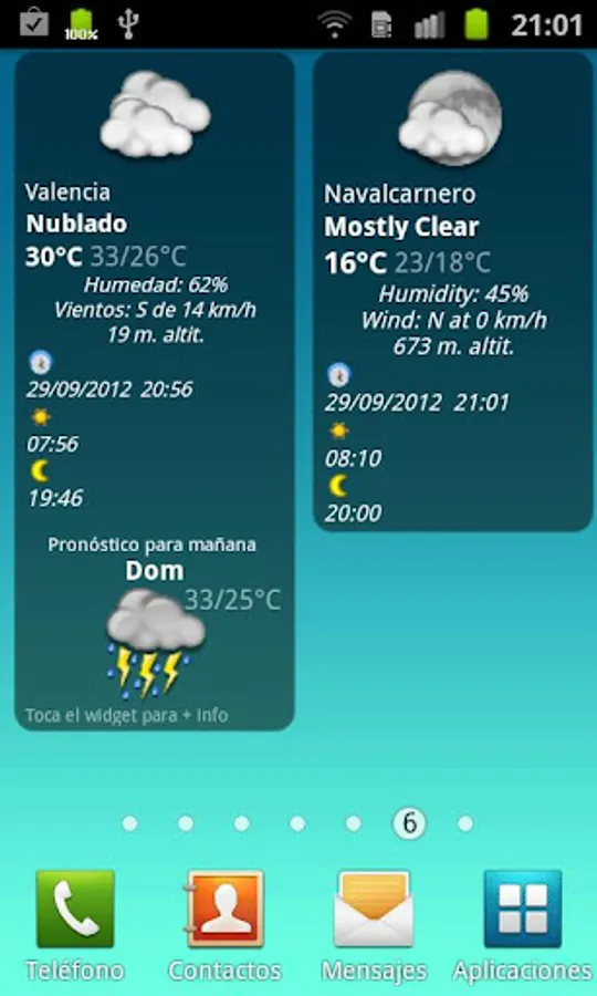 El Tiempo (The Weather): Useful and user-friendly widget with the following features: