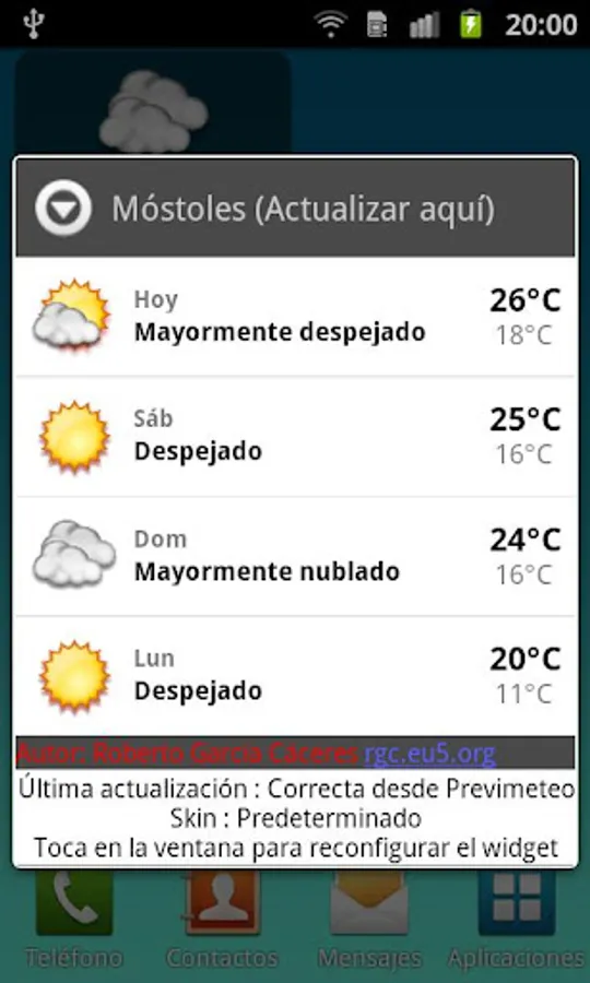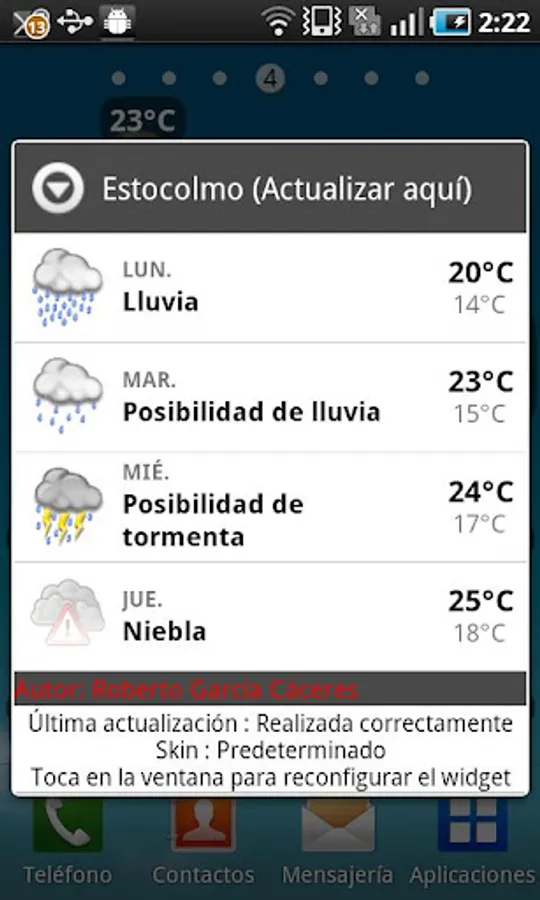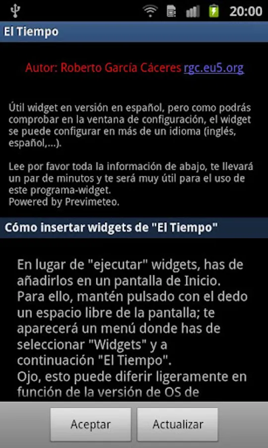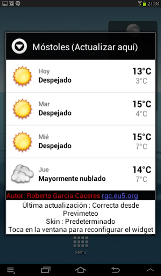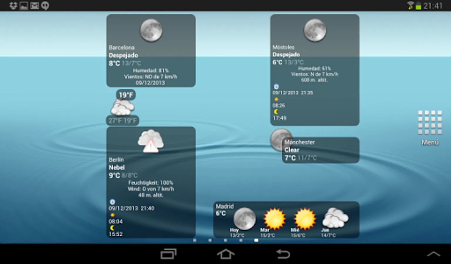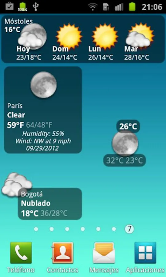 El Tiempo (The Weather): Useful and user-friendly widget with the following features: