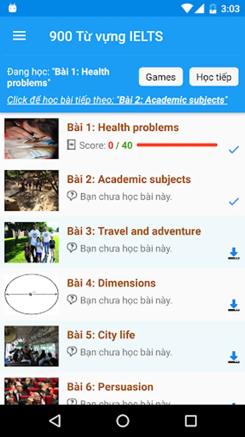 With the internet where slow or no internet "with 900 IELTS vocabulary" has provided school offline download function is very convenient. You can Learn English, homework vocabulary skills anytime, anywhere.