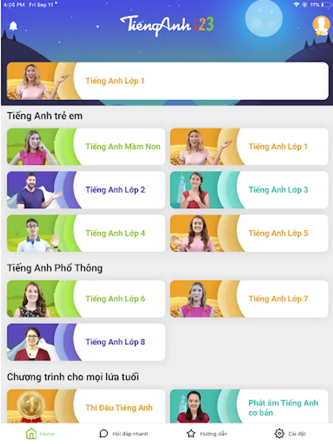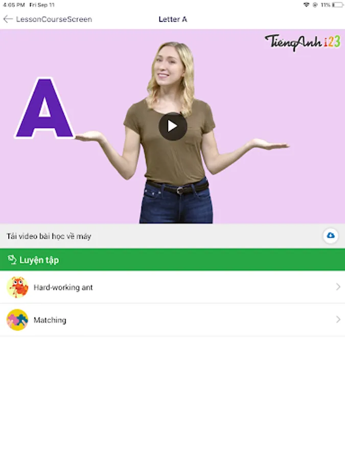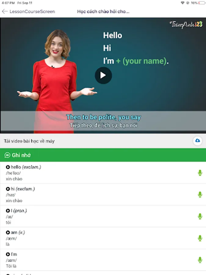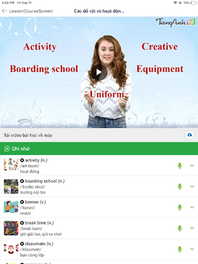 Applications TiengAnh123 learn English online on mobile devices. Help you access the full version on mobile devices to learn English online site in Vietnam: TiengAnh123.com. With this application you can record the lessons, homework, and play online right on your device. Application requires an Internet connection. Full range of items such as learning English through video, basic English level 1, level 2, basic grammar, basic pronunciation, vocabulary, TOEIC, grading items and other items online.