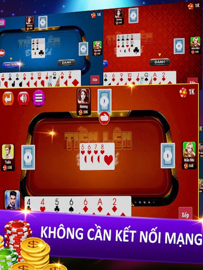 Ngoài dòng game hot nhất hiện nay tiến lên đếm lá - tien len dem la offline tienlen thì mình cũng có những phiên bản mô phỏng game đánh bài offline khác như bài tiến lên miền nam - tien len mien nam offline, tứ sắc - tusac nam bộ, catte - sắt tê - cát tê, mậu binh - mau binh - xập xám, sâm lốc - sam loc - xâm lốc, tiến lên đếm lá - tien len dem la, tiến lên miền bắc - tien len mien bac, liêng cào tố - lieng cao to. Đầy thú vị và hấp dẫn.