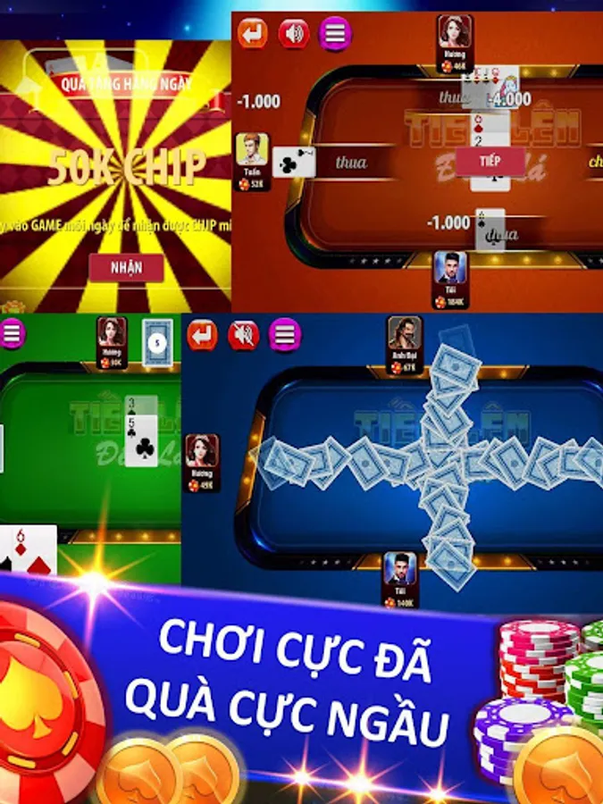 - Đánh bài hết chip không sao, nhận thưởng mõi ngày nha.