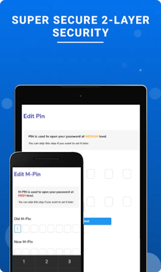- Passaver uses PIN and MPIN to protect your data visibility.