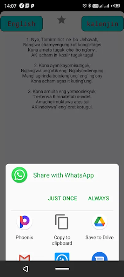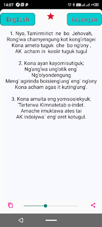 Share, favorite,search(kalenjin, english or numerically) and resize hymn mechanisms implemented