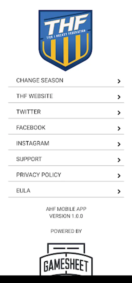 The Official Tier 1 Hockey Federation mobile app powered by GameSheet provides real-time access to player stats, standings, schedules, and game results.