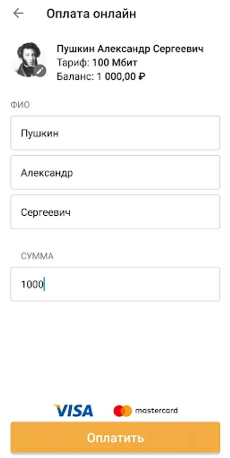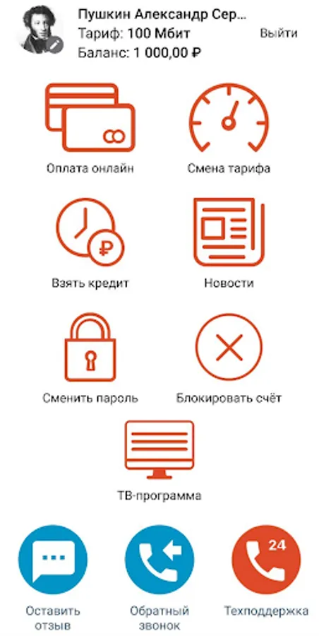• Quickly replenish the account with the help of a bank card or activate the service "credit"