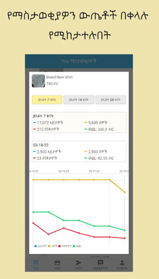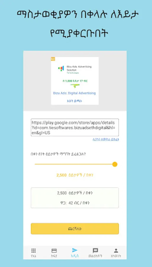 Bizu ads lets you create and run ads to reach tens of thousands of people in Ethiopia at a fraction of the cost compared to traditional advertising methods.