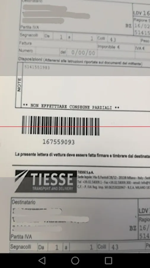 With this application it is possible to perform the hesitation of the deliveries made to Tiesse S.p.A.
