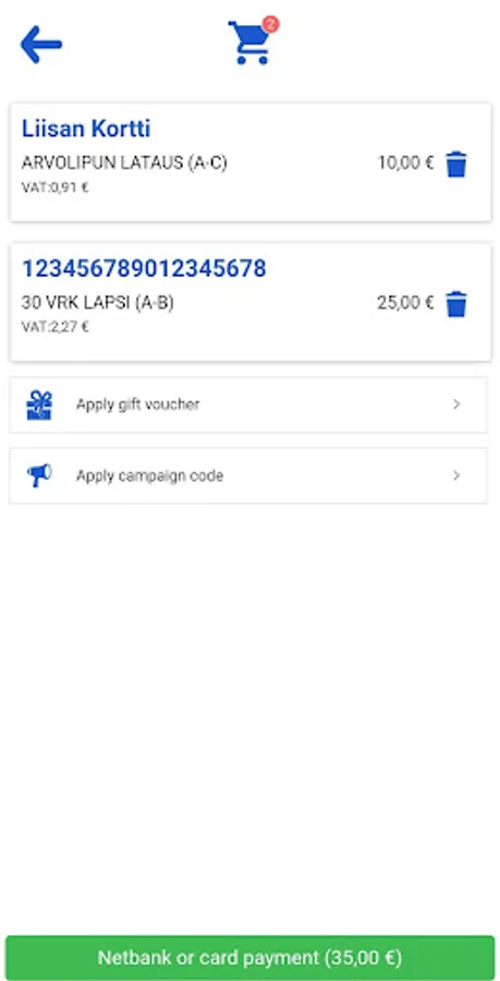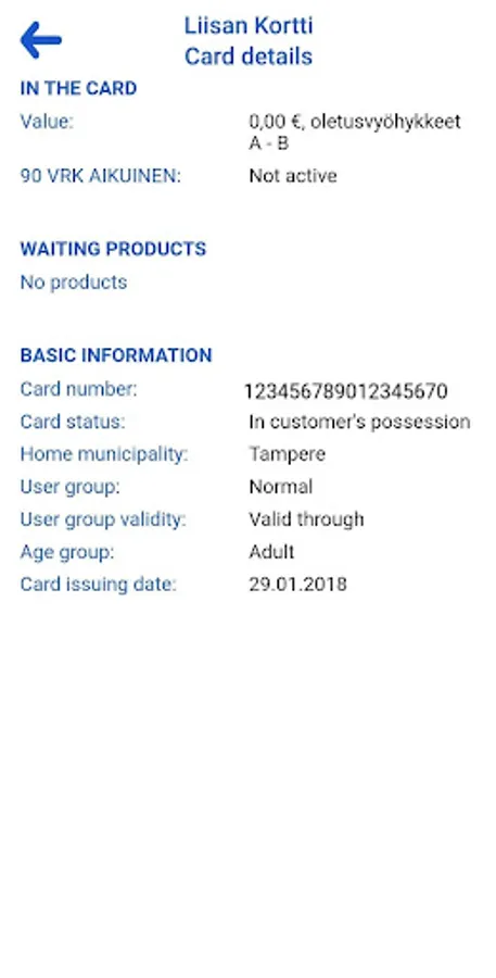 In the application, you can add your own or your family members’ travel cards using the card number. Your personal travel cards can also be added to your user account in Nella Online Service by authenticating strongly via Suomi.fi e-Identification service. Any cards you have added in Nella Online Service are visible in Nella Mobile application as well.