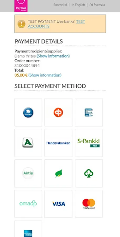 You will need online banking credentials to pay for the tickets. Benefit ticket purchases are not supported for the time being. Benefit tickets can be purchased in Nella Online Service.