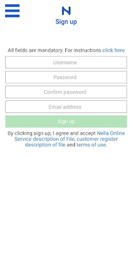 You log in to the application with Nella Online Service (https://nella.tampere.fi/) credentials. If needed, you can create a new user account to the service. You need to have an email address to activate a new user account.