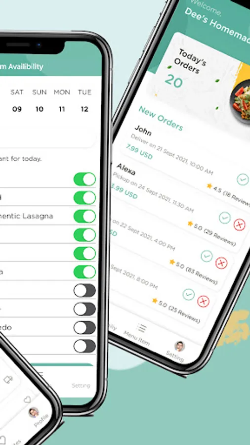 Kitchens get a very easy to use interface to set up their menu, add item availability for different dates, manage orders, and keep track of other activities easily.