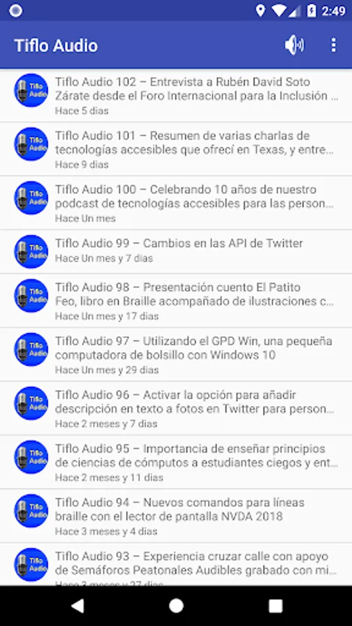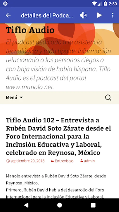 This is the official Tiflo Audio application, a podcast dedicated to technological assistance and all kinds of information related to blind people in the Spanish language. From Puerto Rico, for everyone. Tiflo Audio is the podcast of the www.manolo.net portal.