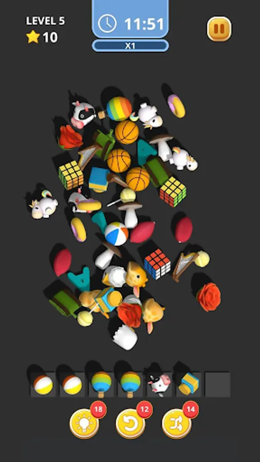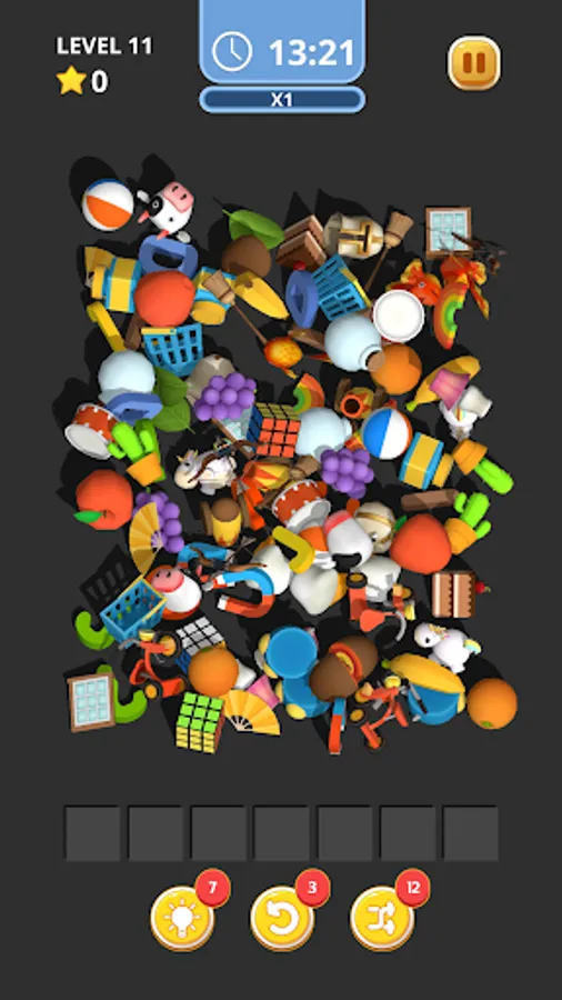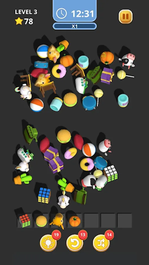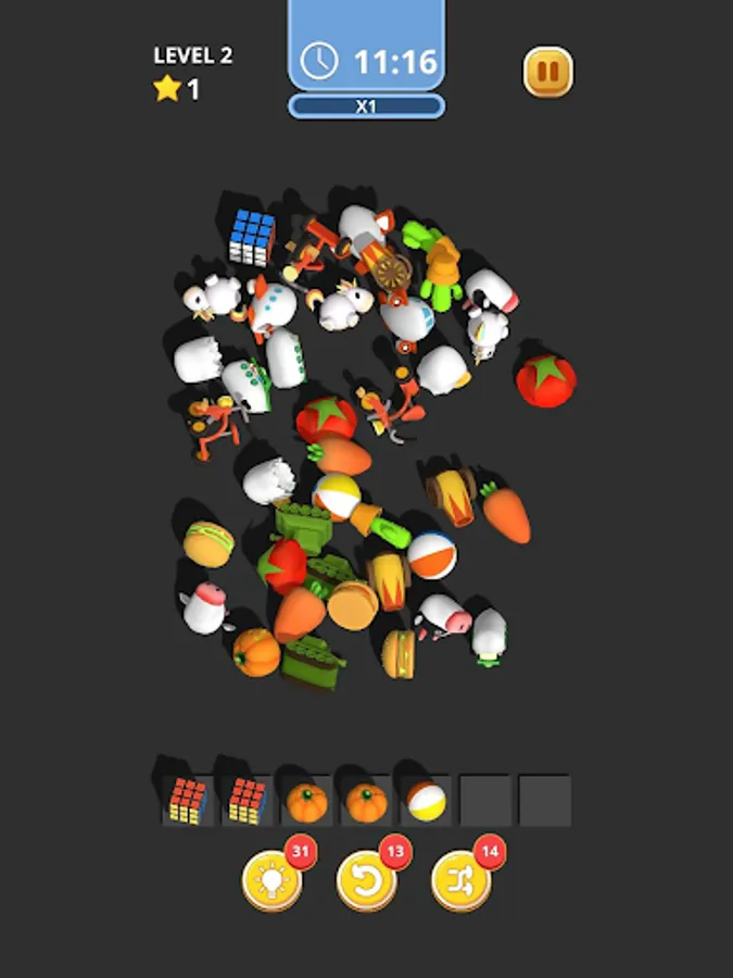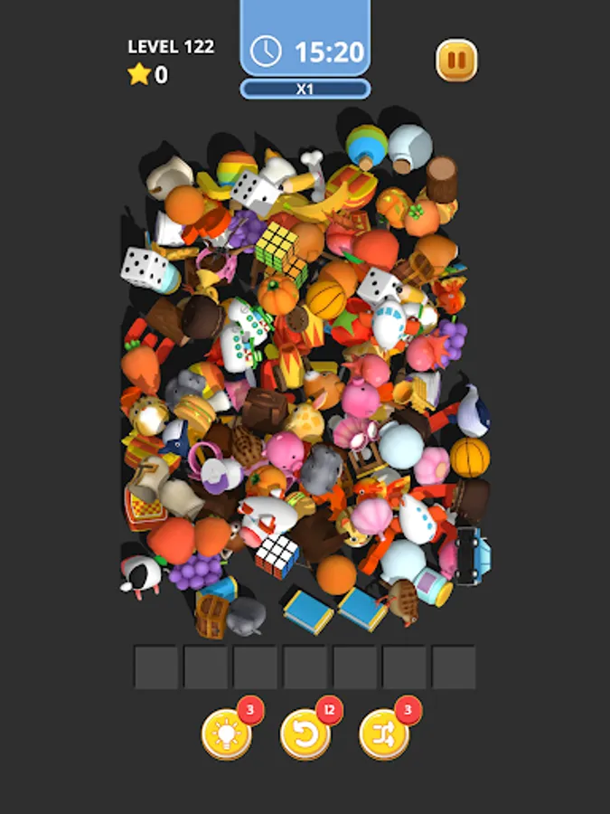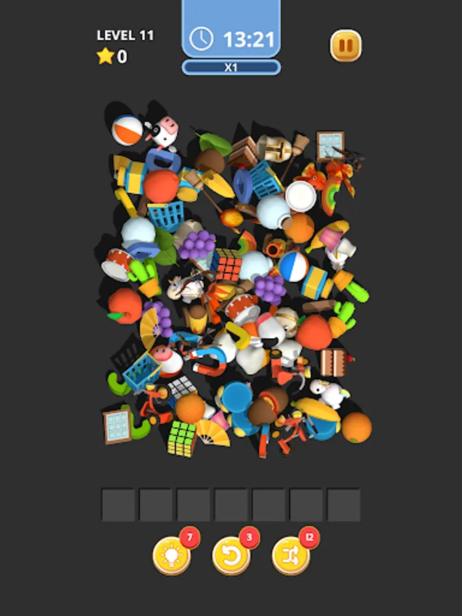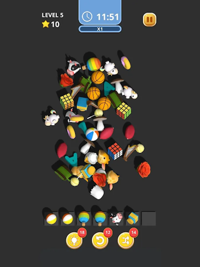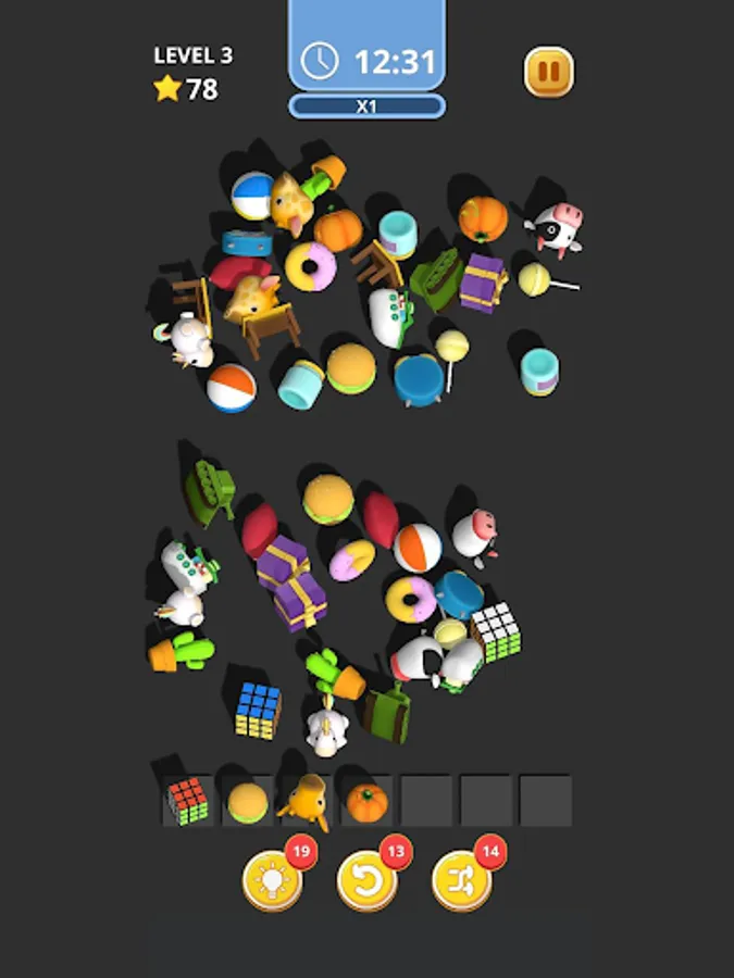 π Just tap to place the 3D objects into the box. Three same objects will be collected.
