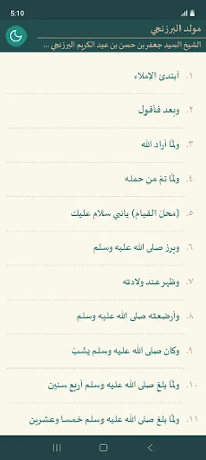 Maulid al-Barzanji (Arabic: مَولِد الْبَرزَنجِي) is the popular name of a popular written verse in praise of of the Islamic prophet Muhammad by Jaʿfar b. Ḥasan al-Barzanjī. It's complete title is Iqd al-Jawhar fī Mawlid al-Nabiy al-Azhar (عقد الْجَوهر في مَولِد الْنَبِي الْأزهَر; The Jewelled Necklace of the Resplendent Prophet's Birth) and it was written in the Arabic vernacular.